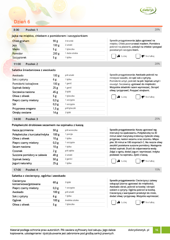 • w formie precyzyjnych jadłospisów wielodniowych (na każdy dzień miesiąca jest opracowany osobny jadłospis). Tutaj nie musisz zastanawiać się co zjeść każdego dnia, gdyż będziesz mieć dokładnie wszystko rozplanowane.