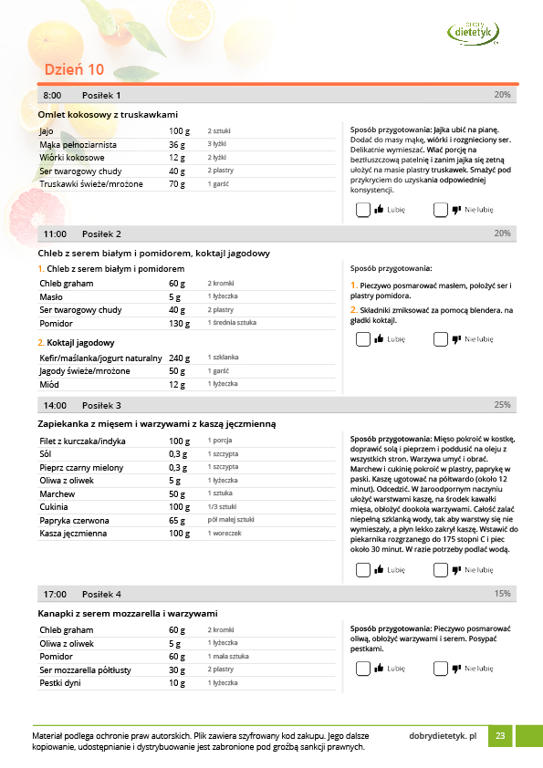 • Liczba posiłków w ciągu dnia: 5
